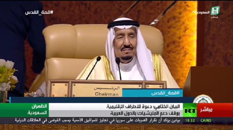 نعرب عن صادق الشكر ووافر الامتنان للمملكة العربية السعودية ملكاً وحكومة وشعباً على حفاوة الاستقبال وكرم الضيافة، وعلى الاعداد المحكم للقمة ونعبر عن خالص الاحترام وفائق التقدير لخادم الحرمين الشريفين الملك سلمان بن عبد العزيز آل سعود على ادارته الحكيمة لأعمال القمة وعلى ما بذله من جهود مخلصة لدعم العمل العربي المشترك وتعزيز التنسيق والتعاون في سبيل خدمة الوطن العربي والتصدي للتحديات التي تواجهه.