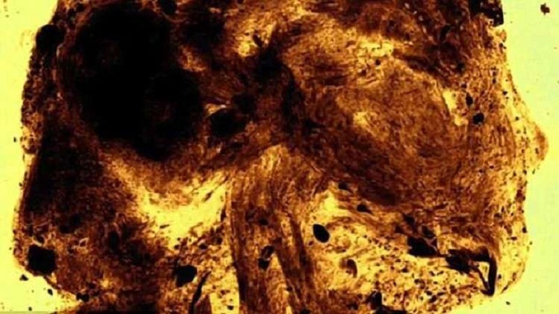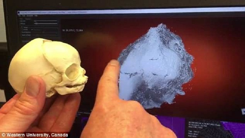وكشفت الدراسة بعد “الافتراض العلمي” عن وجود تشوهات صادمة مميزة لظاهرة نادرة تسمى “انعدام الدماغ”. وقال نيلسون: “الجزء الأكبر من الجمجمة لم يتشكل. كما لم تُغلق أقواس فقرات العمود الفقري، كما تتواجد عظام الأذن في مؤخرة الرأس”.
