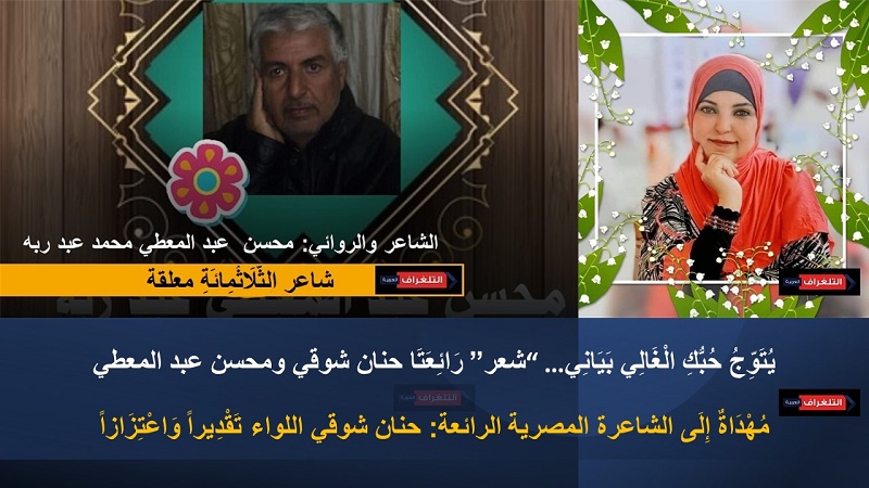 يُتَوِّجُ حُبُّكِ الْغَالِي بَيَانِي… “شعر” رَائِعَتَا حنان شوقي ومحسن عبد المعطي