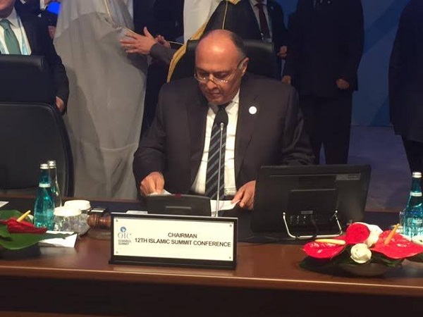 رأس وزير الخارجية سامح شكري، الذي وصل إلى اسطنبول اليوم الخميس، وفد مصر في قمة المؤتمر الإسلامي نيابة عن الرئيس عبد الفتاح السيسي، حيث توجه فور الوصول إلى قاعة المؤتمر وترأس الجلسة الافتتاحية التي ألقى خلالها كلمة الرئيس، وعقب ذلك أعلن وزير الخارجية عن انتقال رئاسة الدورة الثالثة عشر لقمة منظمة التعاون الإسلامي إلى تركيا وغادر مباشرة منصة الرئاسة وقاعة المؤتمر عائدًا إلى القاهرة.