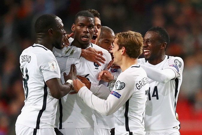 وقاد بول بوجبا، المنتخب الفرنسي، لتحقيق الفوز على هولندا، في تصفيات المونديال، مساء الإثنين، من تسديدة صاروخية من خارج منطقة الجزاء، لم يتمكن الحارس من إبعادها، في الدقيقة (30).