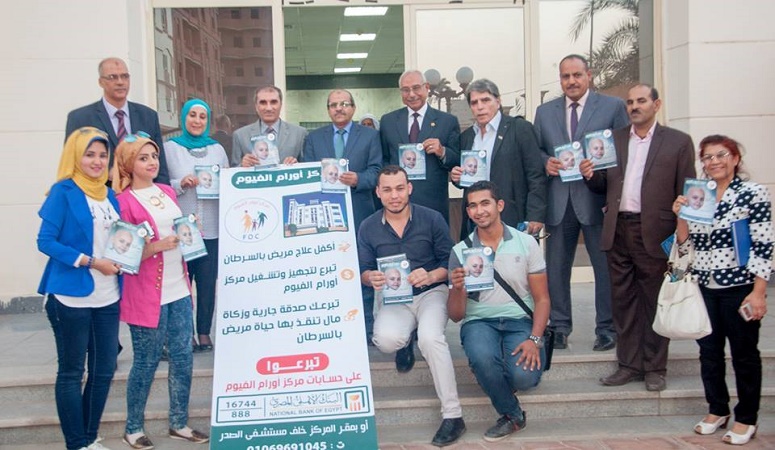 وخلال زيارة وفد قطاع خدمة المجتمع وتنمية البيئة بالجامعة، برئاسة عبد البديع مهدي المدير العام، ومحمد علي مدير ادارة الاتصالات والمؤتمرات، اثنى الضيوف على مجهود مجلس ادارة مركز اورام الفيوم، برئاسة الدكتور صلاح ابو طالب، خلال الاربعة عشر عاماً الماضية، وما وصل اليه المركز في الفترة الاخيرة، وناشد رجال اعمال الفيوم وابناء المحافظة بدعم المركز لافتتاحه قبل نهاية العام الجاري، كما ناشد رجال الاعمال والفنانين ونجوم المجتمع بدعم المركز.